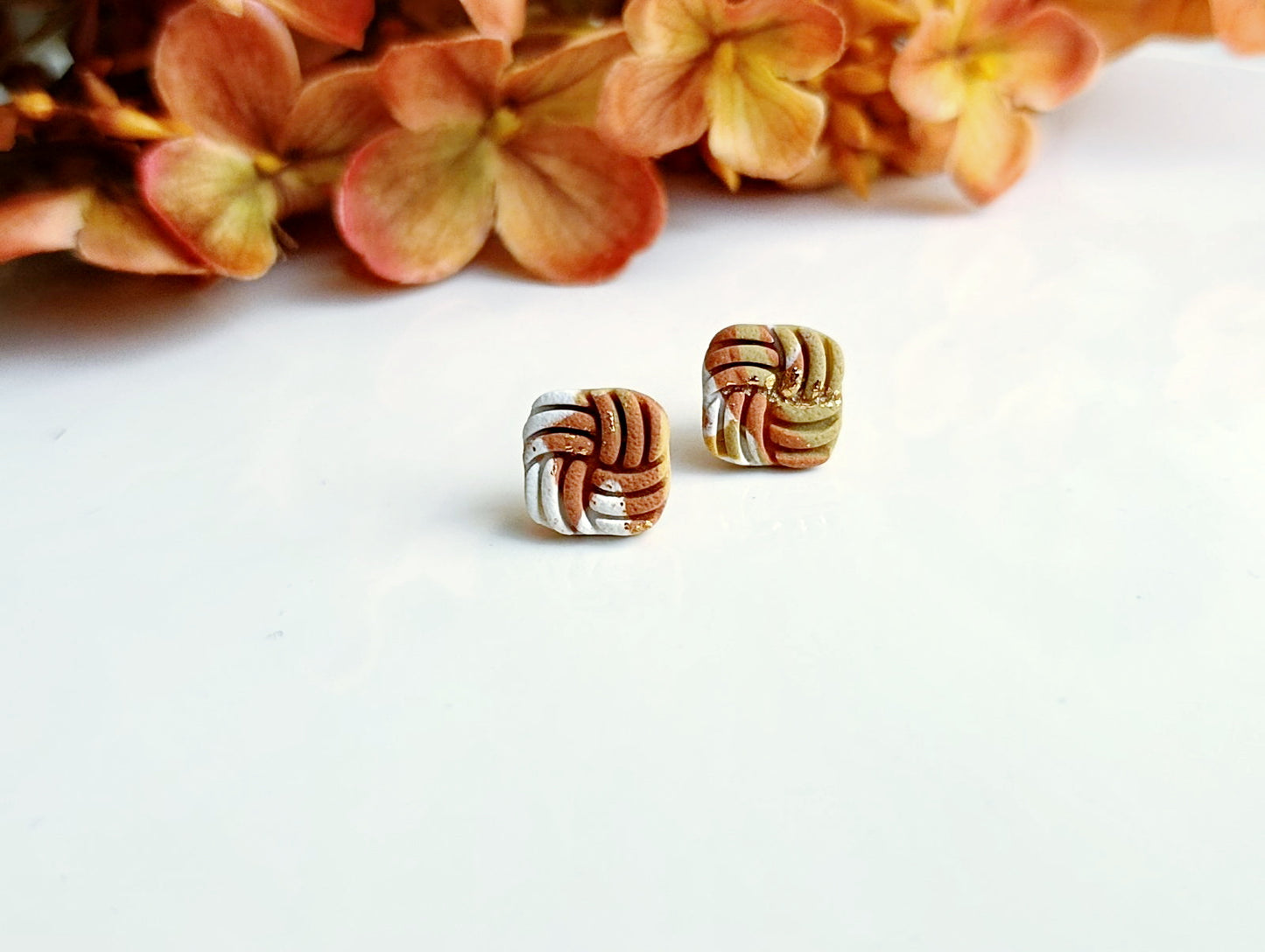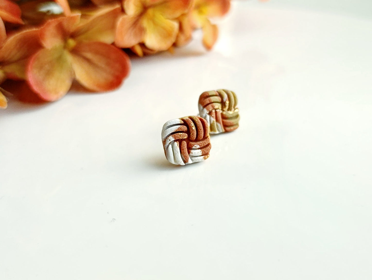 Každý pár je ručne tvarovaný z kvalitnej polymérovej hmoty a doplnený o drobný zlatý lesk, ktorý podčiarkuje ich ženský charakter. Náušnice sú napichovacie, ultraľahké a ideálne na každodenné nosenie z chirurgickej ocele.