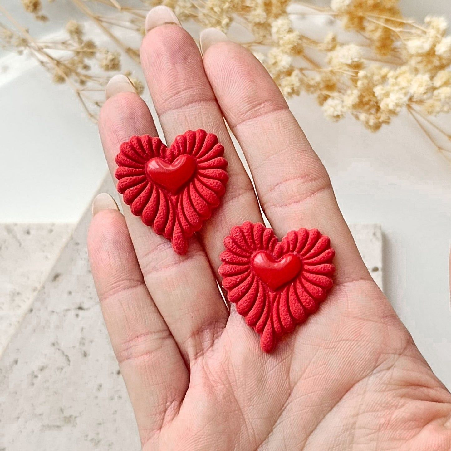 Náušnice Beloved som vytvorila ako výrazný symbol lásky, oddanosti a silného citu. Plastický tvar srdca s ornamentálnym reliéfom pôsobí bohatým a umeleckým dojmom, vďaka čomu sú náušnice neprehliadnuteľným doplnkom. Dominantný stredový motív srdca dodáva modelu hlboký emotívny charakter.