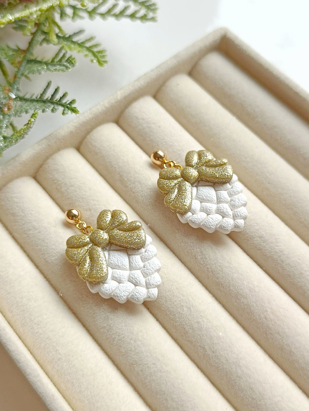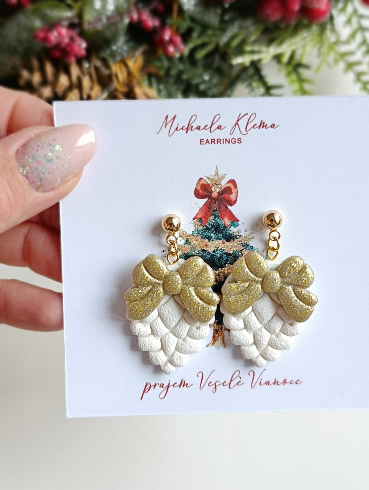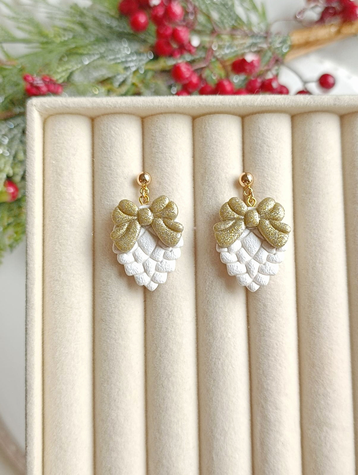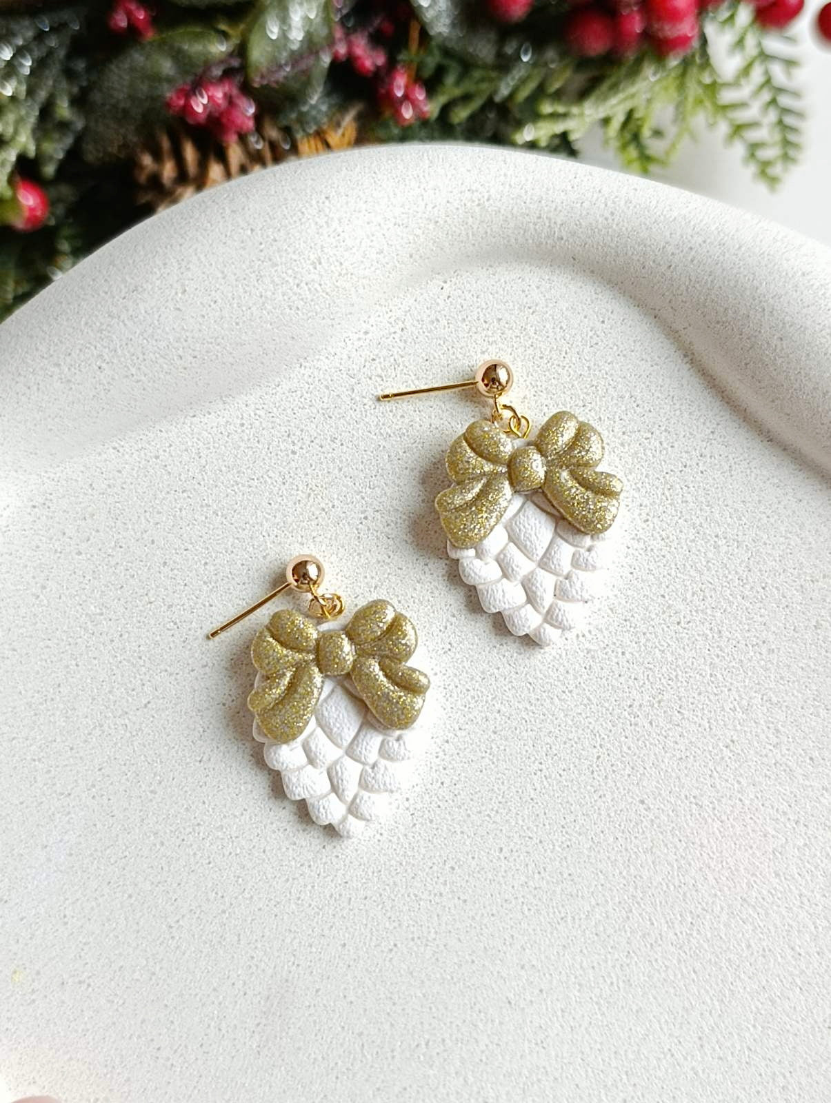 Šiška s mašľou- Vianočné náušnice