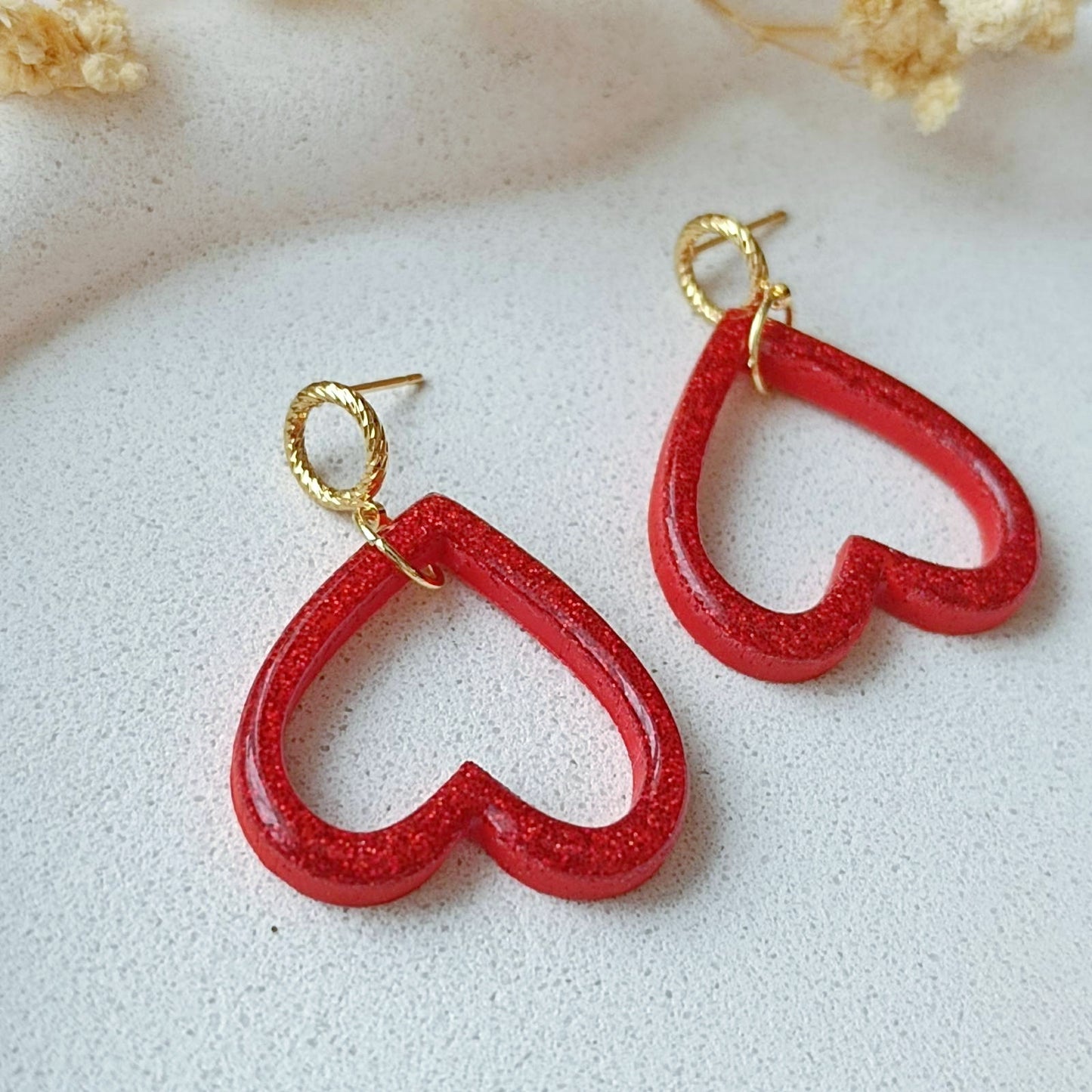 Sweetheart- srdiečkové visiace náušnice glitrované