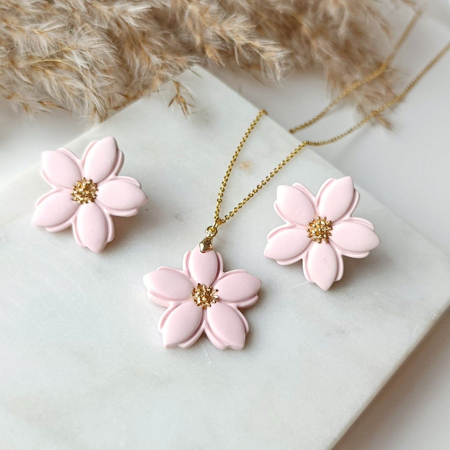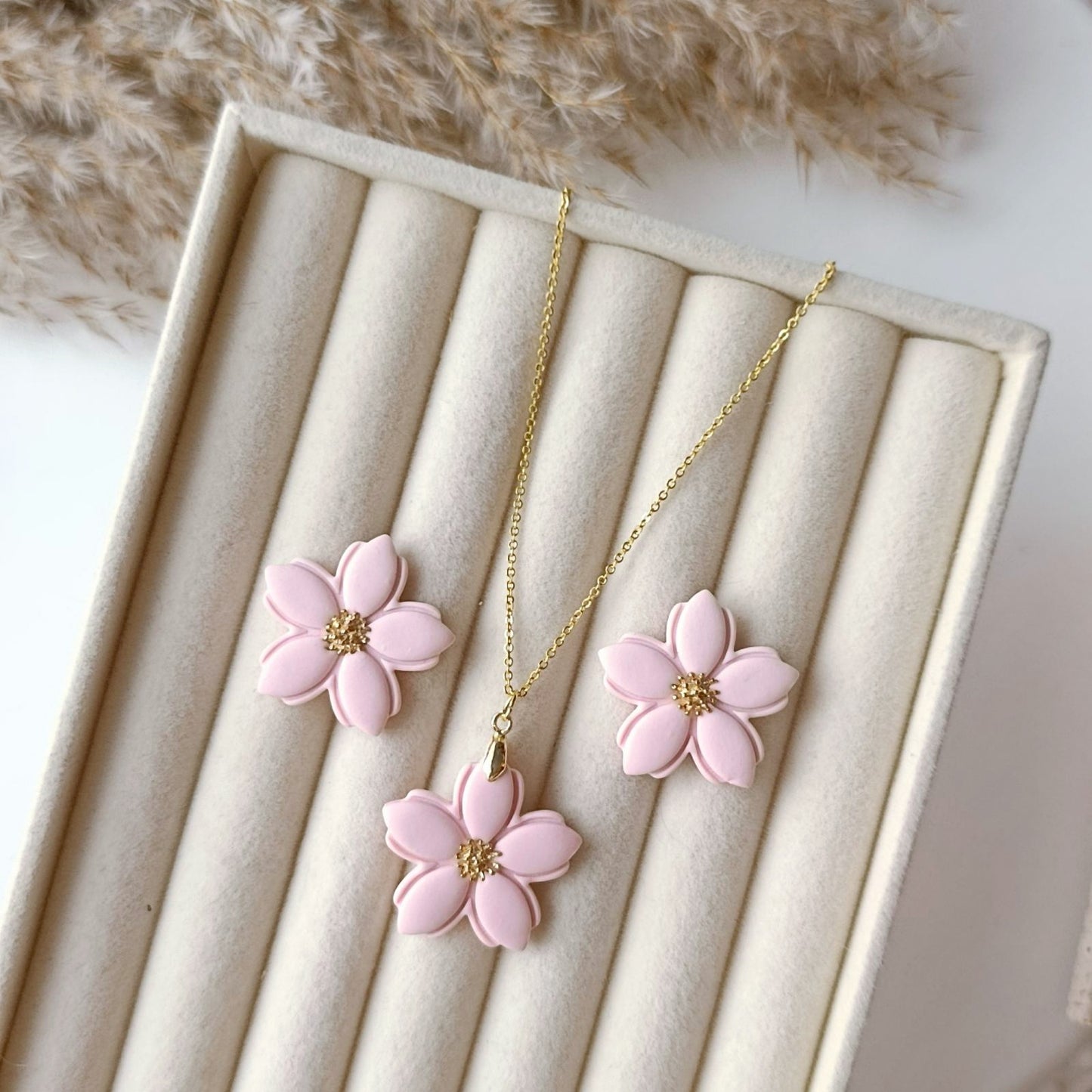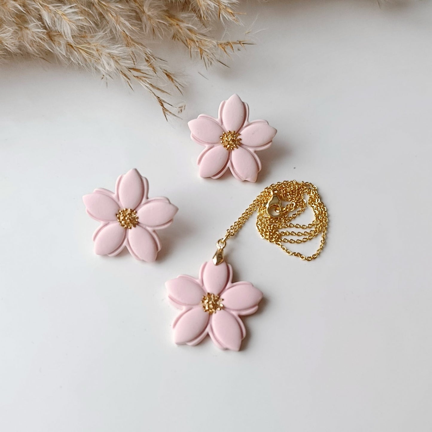 Floria set je jemný šperkový set inšpirovaný rozkvitnutým kvetom – symbolom ženskosti, nehy a prirodzenej krásy. Set tvorí pár náušníc a náhrdelník v rovnakom kvetinovom dizajne, vďaka čomu pôsobí harmonicky a elegantne ako celok.