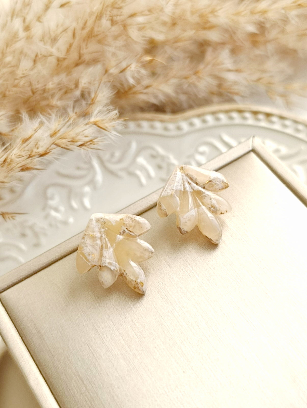 Mramorové zlato – lístkové napichovacie náušnice