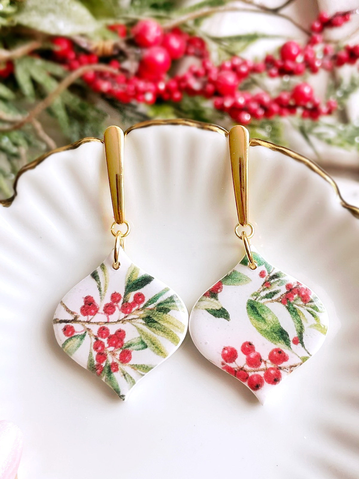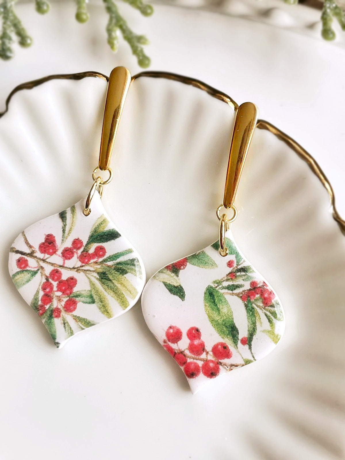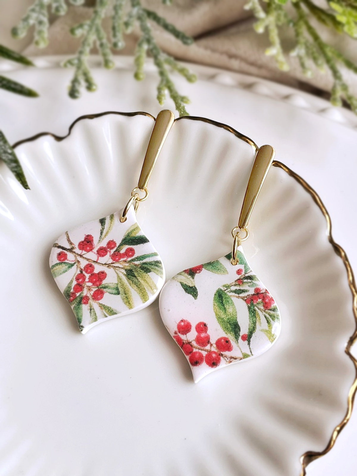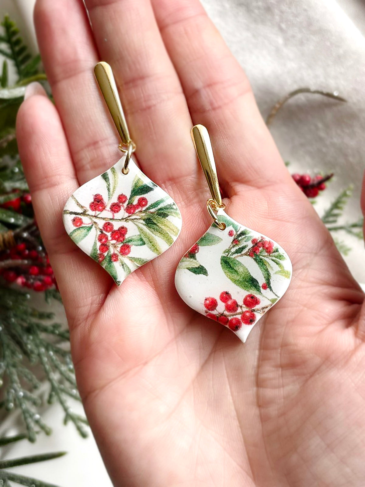 Náušnice Winter Berries sú dokonalým zimným doplnkom pre všetky milovníčky elegancie a prírody. Jemný vzor vetvičiek s červenými bobuľkami na bielom podklade pôsobí nežne a zároveň sviatočne – ideálne na vianočné obdobie aj zimné dni plné svetielok a tepla.